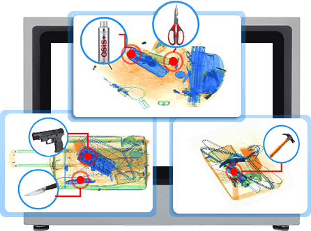 能够识别70类违禁品,包括利器、钝器、警械、易燃易爆物体、爆炸物品、烟花爆竹、可疑金属、可疑容器、工具类等